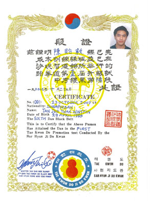 1) Registered Member of Flying Eagle Bong Hapkido Association of Singapore